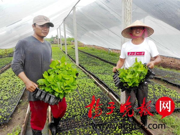 苏州大学陆小平教授(右)田间指导工人育苗“苏州大学及江苏省产业技术研究院纺织丝绸技术研究所的团队应老挝国家所需,探索参与‘一带一路’科技合作方式和路径,体现了苏州大学科技工作者责任和担当。”老挝科技部部长波万坎·冯达拉对远道而来的中国朋友赞不绝口。