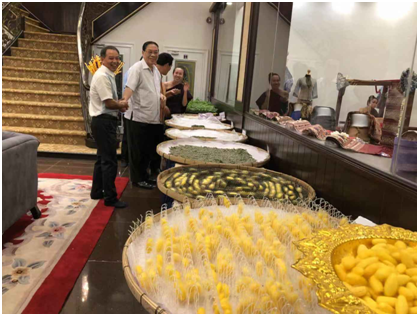 2018年11月16日至22日,应老挝有关方面邀请南通纺织丝绸产业技术研究院“高效集约化现代养蚕关键技术转移转化示范项目”暨“中老绿色丝绸中心蚕桑示范园”项目组参加了老挝一年一度的塔銮节盛会。塔銮节是老挝万象市规模最大、场面最隆重的传统宗教节日。项目积极响应国家“一带一路”战略倡议,发展新“丝绸之路”。通过以饲料代替新鲜桑叶养蚕,节约人力成本,提高桑蚕养殖的生产效率,在国内外率先实现养蚕现代化的转化示范,也为国内蚕桑丝绸生产拓展建立海外桥头堡。《中老绿色丝绸中心蚕桑示范园》位于老挝国首都万象市塞塔尼县萨帕卡农村(Saphakhanong village, Xaythanydistrict, Vientiane municipality),占地约10公顷,由乐动网页版登录入口、老挝女双手公司、苏州大学和老挝国家科技部等单位合作共建,并得到老挝苏州大学等单位的大力支持。 中方融合了传统技艺与现代科技的“江苏现代蚕桑生产过程”展厅,吸引了众多市民参观。