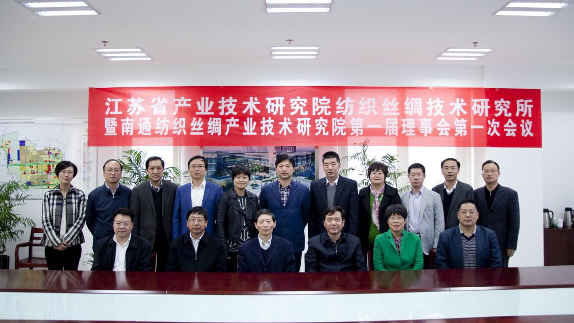 2015年4月12日江苏省产业技术研究院纺织丝绸技术研究所暨南通纺织丝绸技术研究院第一届理事会第一次会议在南通高新区召开。江苏省产业技术研究院、苏州大学、南通市人民政府、南通市科技局、南通市财政局、通州区人民政府以及南通高新区的相关领导出席了会议。本次会议由苏州大学校长、纺织丝绸技术研究所理事长朱秀林主持。