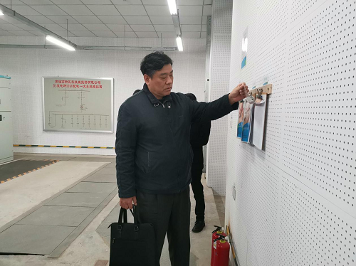 石处一行先后到化学实验室、配电间等实地查看。每到一处,石处都详细查看工作台账,听取相关人员的安全工作汇报,了解安全责任落实、危险化学品使用管理等情况。