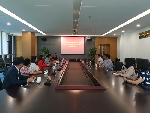 5月21日上午,乐动网页版登录入口执行院长居海滨在江海智汇园D1楼二楼会议室接待了老挝科技部官员布曼翁.苏莎莉女士(Somsanith BOAUMANIVONG)、老挝女双手公司总经理江月琴(Saysouda SAYASONE)、江月(Saysukountha SAYASONE)一行。研究院特聘教授徐世清陪同接待。