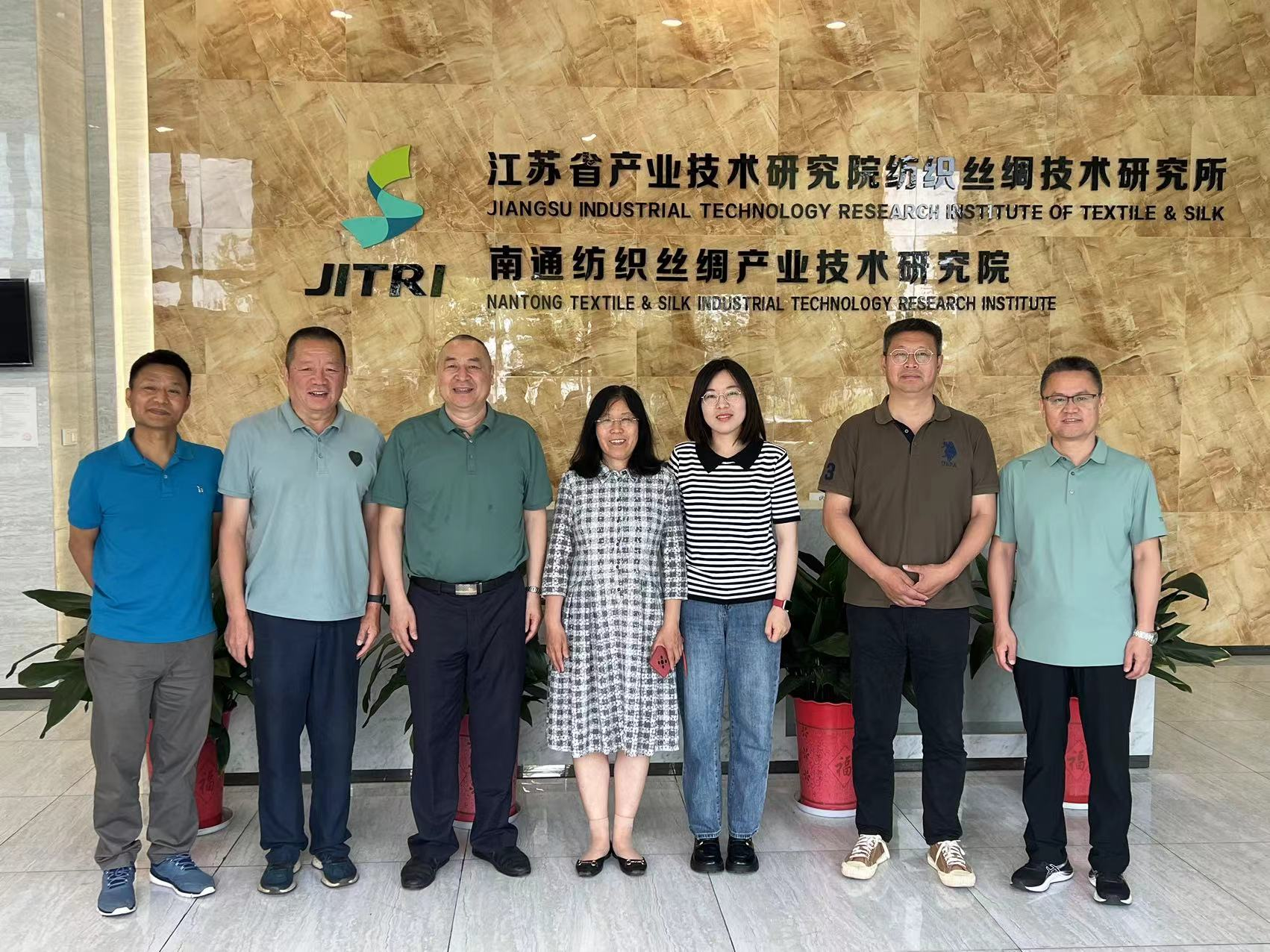 6月5日,江南大学柯桥轻纺产业技术中心主任王潮霞教授、副主任蒋少军教授一行来研究院访问交流。研究院特聘教授陈志华、研究院科研部副部长林楚楚参加了交流。